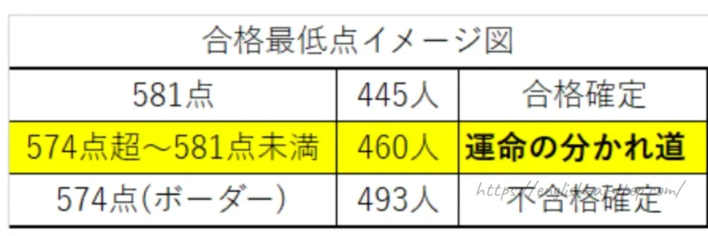 でも、去年の共テ利用合格者は460人と公表しているから、分布(※出典:同上)で推測は可能。
