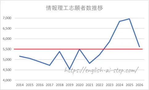 2014年~2026年の志願者数推移をグラフにしたのでご覧ください。